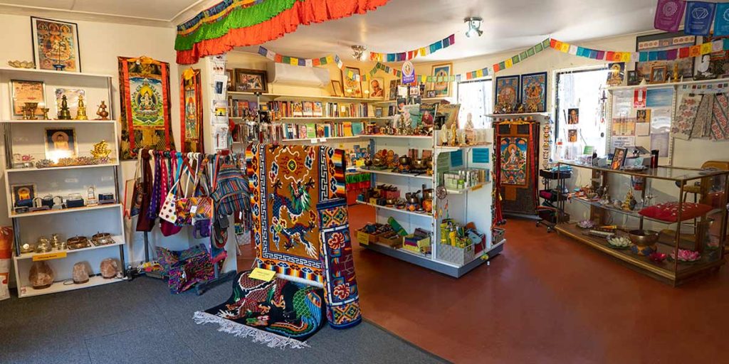 Lama’s Dharma Shop stocks a wide range of ritual and practice items, books on Buddhism for all levels of interest, singing bowls, prayer flags, incense, textiles, and more.