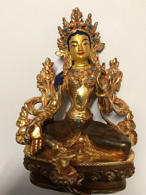 Green Tara Statue with Gold Plating – Blessed – 6″ (15cm)