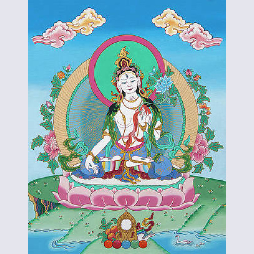 White Tara Print on Canvas 51x42cm – red background